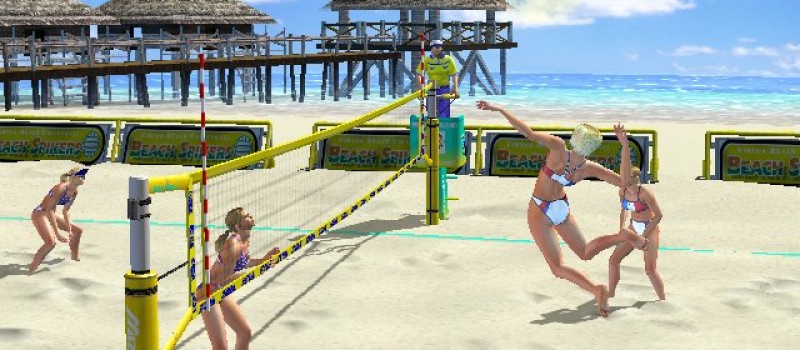 Nintendo Wii) vous le rappelle sans cesse et ce, dès les premières secondes du générique d'introduction. Même les menus sont très "arcade". Tout y est, de la musique techno, aux couleurs flashy, en passant par les sons pop-art saturés... Une fois cet aspect appréhendé, que l'on aime ou pas, nous pouvons passer aux choses sérieuses : l'action. Le jeu de beach volley consiste à renvoyer le ballon dans le camp adversaire après un maximum de 3 touches de balle. Si la balle touche le sol, c'est perdu. Avec une telle simplicité de concept, les développeurs se devaient de créer un gameplay au moins aussi accessible. C'est pourquoi vous aurez pour seul choix de touches A et B (ainsi que le stick pour les déplacements). Le bouton A vous permettant de faire un renvoi "énergique" et B un renvoi "mou". Subtilité à laquelle vous pouviez vous attendre, on peut faire une combinaison A+B pour égayer tout ça. Au service, cette combinaison permet de faire une attaque puissante, alors qu'en pleine action, elle permet soit un renvoi direct en camp ennemi, soit une passe pour un smash dès la première touche de balle. Bien entendu, vous aurez la possibilité de faire des contres, actions difficiles à placer qui seront donc la vraie différence entre les bons et les mauvais. Les contres feront la différence avec des joueurs novices, mais accentueront la prise de risque. Et ne vous fiez pas à la simplicité des actions disponibles, car les combinaisons stratégiques et les changements de rythme sont nombreux et permettront des joutes intenses entre amis.