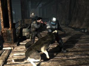 Namco Bandaï nous a permis de mettre nos petits doigts potelés dessus. Alors que les deux premiers opus de la série obtinrent un succès plutôt très mitigé, celui-ci fait peau neuve et change de studio de développement. Rappelons que le jeu est édité par la branche US de la firme. Ne soyez donc pas choqués de voir des litres d'hémoglobines et des yeux normalement proportionnés sur les visages des personnages. Le jeu vous place dans la peau de Jack ainsi que dans celle de son chien, Shadow. Le niveau présenté montrait notre héros à bord d'un train plein d'explosifs, qui justement explosait. Inconscient et dans les décombres, nous avons ainsi tout d'abord pris le contrôle de son husky. Shadow n'est pas un husky que l'on peut accrocher sur une affiche dans la chambre d'une petite fille de huit ans, non. Tenant plus du loup que du meilleur ami de l'homme, il déchiquette les ennemis de son maître, tire leur cadavre dans les zones sombres, les piste pour leur tendre des embuscades etc... Le meilleur ami de l'homme peut adopter 3 "modes" bien distincts : agressif, quand il grogne et saute à la gorge des inconnus, discret, lorsqu'il s'agit de pister discrètement quelqu'un et se faire tout petit, et puis normal, le mode idéal pour aller chercher la balle ou faire un petit jogging avec lui en forêt. Les développeurs ont fait un gros effort de modélisation sur le chien afin de lui donner autant d'expressions qu'un humain. Côté action, Shadow n'a rien à envier à Solid Snake, surtout depuis qu'il est six pieds sous terre. Il peut éliminer silencieusement ses adversaires, aboyer pour les attirer quelque part, planquer leurs cadavres... Lors des phases d'infiltration, les ennemis apparaissent de différentes couleurs en fonction de leur état : s'ils vous ont vu, s'ils sont juste en alerte ou s'ils fument leur petite clope tranquillement sans savoir que dans deux minutes ils pourront voir leur gorge au sol. Bien sûr, c'est en équipe que Shadow déploie le meilleur de son potentiel puisqu'en bon toutou à son maîmaître, il rapporte les armes sur les cadavres, désarme les vauriens tandis que son maître en profite pour les zigouiller, et parfois même pisse sur les cadavres parce qu'il ne faut pas oublier que c'est Namco Bandaï US qui développe le jeu. La bonne nouvelle est que Shadow ne peut pas mourir. Il peut être sonné et devoir attendre votre aide, mais comme dans tout bon film américain, vous pouvez faire crever le noir, le second rôle, parfois même la fiancée du héros (de préférence au début afin que sa vengeance soit impitoyable) mais PITIE NE TOUCHEZ PAS AU CHIEN ! Jack propose un mode de combat plus traditionnel mais bien fourni aussi. Outre les armes plutôt classiques, celui-ci se débrouille très bien à mains nues, même contre plusieurs ennemis à la fois grâce à un système de combos et de désarmements rapides. Evidemment, l'intervention du chien est plus que nécessaire dans pas mal de situations, et il s'agira de tirer le meilleur profit possible de cette alliance. Prenons un exemple où vous rentrez dans une pièce avec le husky et 3 bandits vous y attendent. Vous pouvez en prendre un pour le jeter sur l'autre, et grâce à un système intéressant de focus mode (inspiré du bullet time avec visée quasi automatique), exécuter directement le 3ème. Le temps que le premier se relève, assénez lui une combo pendant que votre chien sautera à la gorge du 3ème. Après y avoir joué, c'est un sentiment plutôt positif qui se dégage du jeu. Même si le développement n'est pas terminé, il a le potentiel pour devenir un très bon jeu d'action, même s'il ne révolutionnera pas le genre. La maniabilité demandait une certaine adaptation, mais impossible de savoir si celle-ci sera un petit peu revue d'ici sa sortie. Le jeu n'ayant pas encore de date de sortie officielle, on peut se douter que son développement va s'étendre encore un peu sur l'année 2010. Probablement un des défouloirs les plus rigolos de l'an prochain, en tout cas on l'espère.