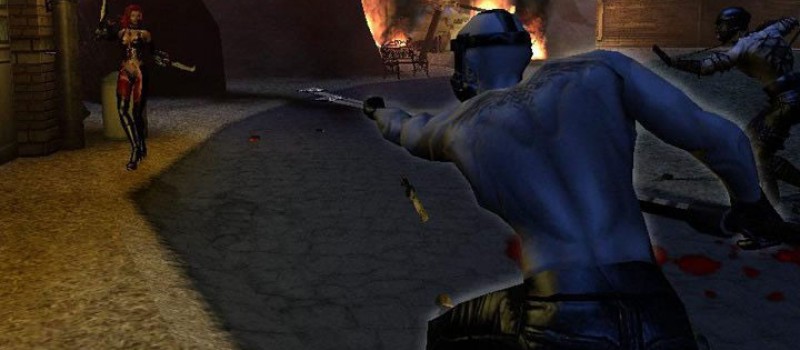 Blood Omen 2, mais d’utiliser ses capacités surhumaines. Ainsi, sauter au cou de l’adversaire pour le lui sucer si sensuellement afin de se régénérer (diablement efficace) constitue un seul échantillon des autres possibilités. Rayne est en effet capable de ralentir le temps (comment ça du déjà vu ?), d’activer une vue dans le genre « prédateur » pour mieux repérer les ennemis et devinez instinctivement le chemin à suivre, et puis aussi se foutre dans une transe vampirique pour buter « encore plus » efficacement les déjà trop faibles PNJ (d’ailleurs, gardez cette compétence pour les boss). A rajouter la certaine classe que possède notre belle rousse pour empaler ses adversaires ou les décapiter, pour marcher sur les rampes d’escalier ou slidez dessus vos épées à l’horizontale, ou encore à exercer quelques acrobaties à la manière du Prince de Perse à qui elle n’a presque rien à envier (bon si, mais c’est déjà pas mal ce qu’elle fait, vraiment). Et je tiens à souligner le caractère assez fun du ralenti, puisqu’il est poussé à son paroxysme : les ennemis sont désormais tellement lents qu’on a le temps de les jeter en l’air, de sucer un de ses camarades (oh la cochonne !), de le rejoindre en hauteur pour le trancher (premier coup), de retomber, anticiper l’endroit de sa chute, et le retrancher (deuxième coup) avant que celle-ci ait lieu. J’ai trouvé ça génial.