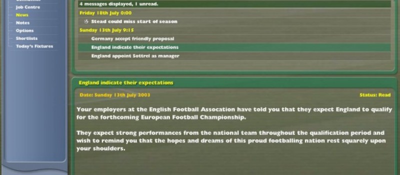 Comme d’hab vous devrez déjà penser à remplir les objectifs présidentiels, différents selon le club que vous choisirez de diriger. Si vous pensez pouvoir diriger le Real dès votre première saison, je vous souhaite bien du courage. Si vous n’obtenez pas des résultats rapidement, votre tête risque fort bien de tomber vite fait et vous vous retrouverez contraint d’aller entraîner Tours en National. Un petit bémol : les contrats marketing ne peuvent pas être gérés. A part cela, vous découvrirez vite qu’absolument TOUT peut être paramétré. De la classique formation de base (4-4-2 pour ma part), vous choisirez les tireurs de coups francs et de corners, le capitaine, appeler en équipe première des espoirs, venus tout droit du centre de formation ou même pénaliser verbalement ou financièrement un joueur qui aurait fait preuve d’un manque de sérieux (retard à l’entraînement…). Petit plus amusant dans cette version : certains entraîneurs, en fonction de vos déclarations, pourront devenir vos amis. Eh oui, dans le jeu, je suis ami avec Guy Roux. Ca vous la coupe hein ?