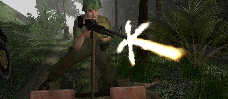 Vietcong qui vous voit de loin aura peu de mal à vous aligner et à vous envoyer au paradis des gamers-rushers mais une fois nez à nez avec lui, il lui faudra bien cinq secondes pour calculer que vous êtes une entité ennemie et généralement pendant ces cinq secondes, vous avez eu le temps de vider un chargeur de haut en bas. et Et oui, le saucisson de Viet c'est bon mangez-en… Les supports, (infirmier, mitrailleur, ingénieur) ont gagné une palme pendant mes pérégrinations sur ce soft : celle de m’avoir saoulé au point de mettre des coups dans mon bureau, ils ne savent pas viser, me gênent trop souvent, m’empêchent de me replier et ont le don de se mettre devant moi alors que j’amorce un tir de balayage et ça ne loupe pas: je les bute et la mission échoue, je vous jure que louper une mission à cause de ça c'est très frustrant et nombre de fois je me suis demandé si je devrais pas trouver un moyen de les bloquer derrière une porte, manque de bol lobotomisés comme ils sont, ils savent tout de même les ouvrir et finissent toujours par vous rejoindre… Même quand c'est trop tard. A noter qu’en plus ils ont leur importance, l’infirmier vous soigne (mais vous perdez un pourcentage de vie à chaque soin), et l’ingénieur vous fournit des munitions et c’est justement quand vous avez besoin d’eux que vous découvrez qu’ils ont été fauchés par un tir de suppression alors qu'ils couraient vaillamment à découvert pour vous rejoindre. Fidèles jusqu'à la mort, c'est ça l’IA dans