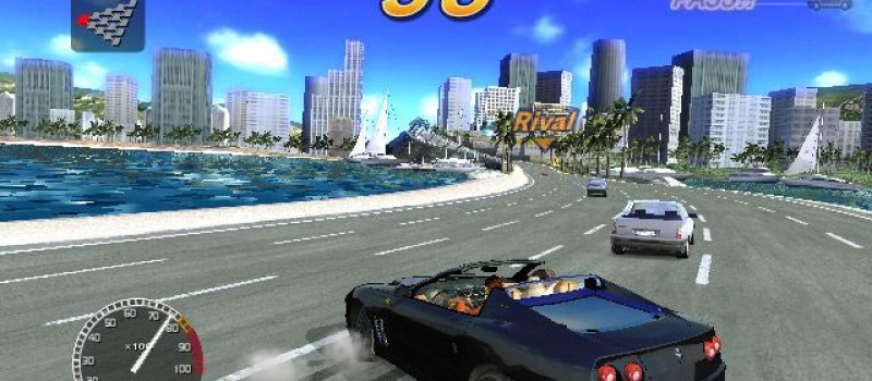 Bien évidemment, on ne pouvait pas laisser passer le point que tout les développeurs redoutent. Je vais attaquer avec les graphismes. Pleins de couleurs, ces derniers sont assez bien faits. Pas vraiment travaillés en profondeurs mais lisses et avec un beau rendu. Cependant je n’arrive toujours pas à comprendre dans quelle partie de l’Amérique on passe du centre ville de L.A. à la montagne (celles-ci poussent comme des champignons)… si quelqu’un à une idée qu’il en fasse part sur le forum. Les voiture sont très bien modélisées, avec des carrosseries reluisantes, rien à dire de ce côté-là, le constructeur à de quoi être content. La musique qui accompagne le tout est fidèle à la série étant donné que c’est la bande son de la version 2004 remixée avec quelques morceaux de la borne d’arcade ce qui laisse un petit arrière goût de poussière et surtout une impression de sonnerie de téléphone en MIDI. C’est dommage car ça joue beaucoup mais bon, en coupant le son et allumant son poste ça passe très bien. En plus des voitures, voici un autre (très) bon point pour le jeu, la prise en main. Pas besoin de passer 4h sur le jeu pour pouvoir réussir à conduire comme Schumarer., 5 petites minutes, voir 10 pour les moins doués, seront amplement suffisantes et ça rend le jeu très agréable car on ne galère pas pendant 15000 ans à recommencer toutes les courses car on ne sais pas conduire. Gagner une course, contrairement à d’autres jeux, et bien c’est une chose relativement simple. Un coup d’accélérateur, quelques dérapages contrôlés à 300 Km/H, des voitures doublez sans trop d’efforts et hop le tour est dans le sac. Certaines courses sont un peu plus éprouvantes que d’autres, normal sinon le jeu n’aurait vraiment aucun intérêt mais bon, la difficulté reste assez faible dans l’ensemble.