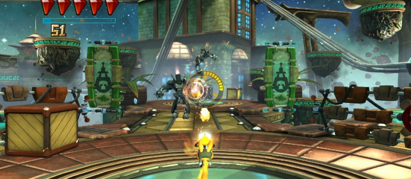 Au programme : bowling, frisbee à lames, jeux de tirs, combats en mêlée, fouet électrique… Des niveaux et des modes de jeu en nombre qui témoignent d’une véritable envie de marquer le coup. De façon générale, l’appareil répond bien aux mouvements, il suffit de trouver les bons. Quel que soit le personnage choisi (on vous donne comme possibilité soit l’un des héros, soit l’un des acolytes en fonction du niveau, malheureusement jamais une équipe à la fois !), vous aurez la même mission, avec le même gameplay. La petite différence se trouve dans le pouvoir spécial qu’il est possible de déclencher de temps à autre, qui permet par exemple à Sly de ralentir le temps, ou à Ratchet de faire danser les ennemis au son d’un petit air disco. Ces variations étant légères, on ne se voit pas imposer un personnage en particulier pour chaque mission ; ce qui a aussi pour effet de réduire le charisme de chacun.