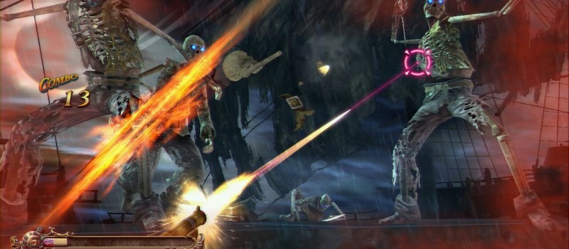 PS Move en main et à bord d’une barque, on dégommait à mort des dizaines de piranhas qui sautaient sur l’écran. Comme c’est un jeu qui est prévu surtout en coop, tirer dans la même direction donnait plus de bonus et plus de puissance au tir. Pour certains boss, c’était la seule technique possible pour les tuer. S’ajoutent à cela quelques énigmes où il fallait notamment tourner le