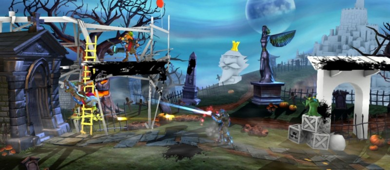 Ratchet & Clank. Ceux-ci sont souvent très actifs et interviennent directement dans les combats. Quand ce n'est pas le décor qui descend et qu'il faut suivre pour ne pas prendre un malus d'énergie, c'est Hadès qui attaque directement le stage... Des bonus sont aussi disponibles et permettent l'utilisation d'armes (frappe aérienne, hache, grenades, etc....) ainsi que des bonus d'énergie ou même de vitesse. Certains proposent même des mini-cross over, comme lorsque le décor simpliste de