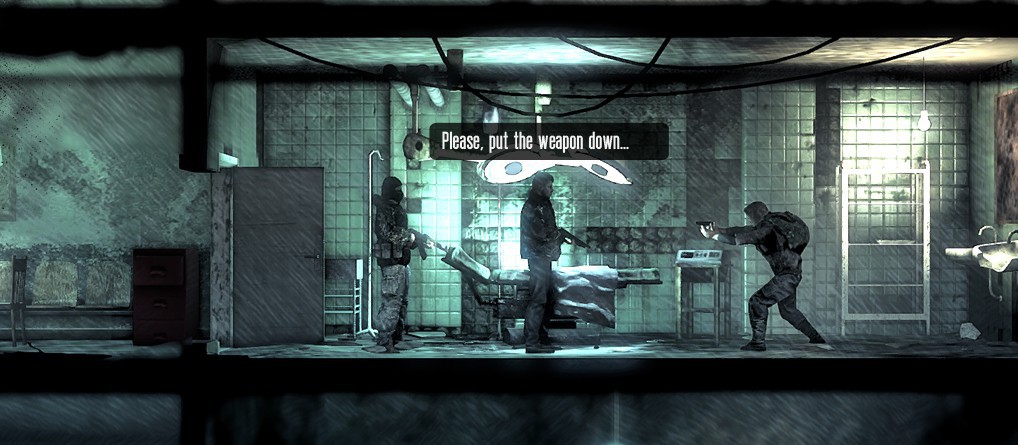 11 Bit Studios ont opté pour des graphismes en 2D vue de côté, avec quasiment aucune couleur : le gris est dominant et n'est perturbé que par de petites touches de couleurs, comme par exemple le rouge si une présence hostile se fait sentir. L'atmosphère de la guerre est omniprésent, que ce soit au niveau des bâtiments, à moitié en ruine à cause des bombardements, ou des personnages, qui ne cesseront de se plaindre qu'ils ont faim, qu'ils sont au bout du rouleau, qu'ils songent à en finir ou qu'ils craignent de basculer du mauvais côté de la force, en tuant ou volant à des personnes sans défense. Et mine de rien, ça fait mouche : on s'attache vite à ces simples civils qui se battent pour survivre, on est peiné lorsque l'un d'entre eux est mal en point, et ainsi de suite. Mais là où