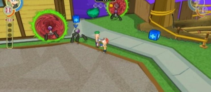 Le scénario de ce soft pourrait tenir dans un mouchoir de poche : un vilain méchant a fabriqué un « dimensioninator » qui a transporté nos joyeux lurons dans une dimension parallèle. Ces derniers vont donc tout faire pour retourner dans leur monde réel, en passant par de multiples dimensions et aidant par la même occasion les habitants qu’ils vont rencontrer. Les fans de la série seront ravis de retrouver des têtes connues : les deux héros, bien entendu, mais également l’Agent P (un ornithorynque aussi connu sous le petit nom de Perry), Candice ou encore le terrible Professeur Doofenshmirtz. Ils feront également la connaissance de Terry, alias Agent T, qui est en fait une tortue. Tout ce beau monde traversera plusieurs dimensions qui ont chacune leur identité propre et dont certaines sont assez amusantes. Il y a par exemple un monde tout en noir et blanc avec des animations de cartoons à l’ancienne, un autre tout en ballons, un autre encore où les nains de jardin terrorisent les citoyens, etc. Au moins, on ne peut pas reprocher au titre de manquer de diversité à ce niveau.