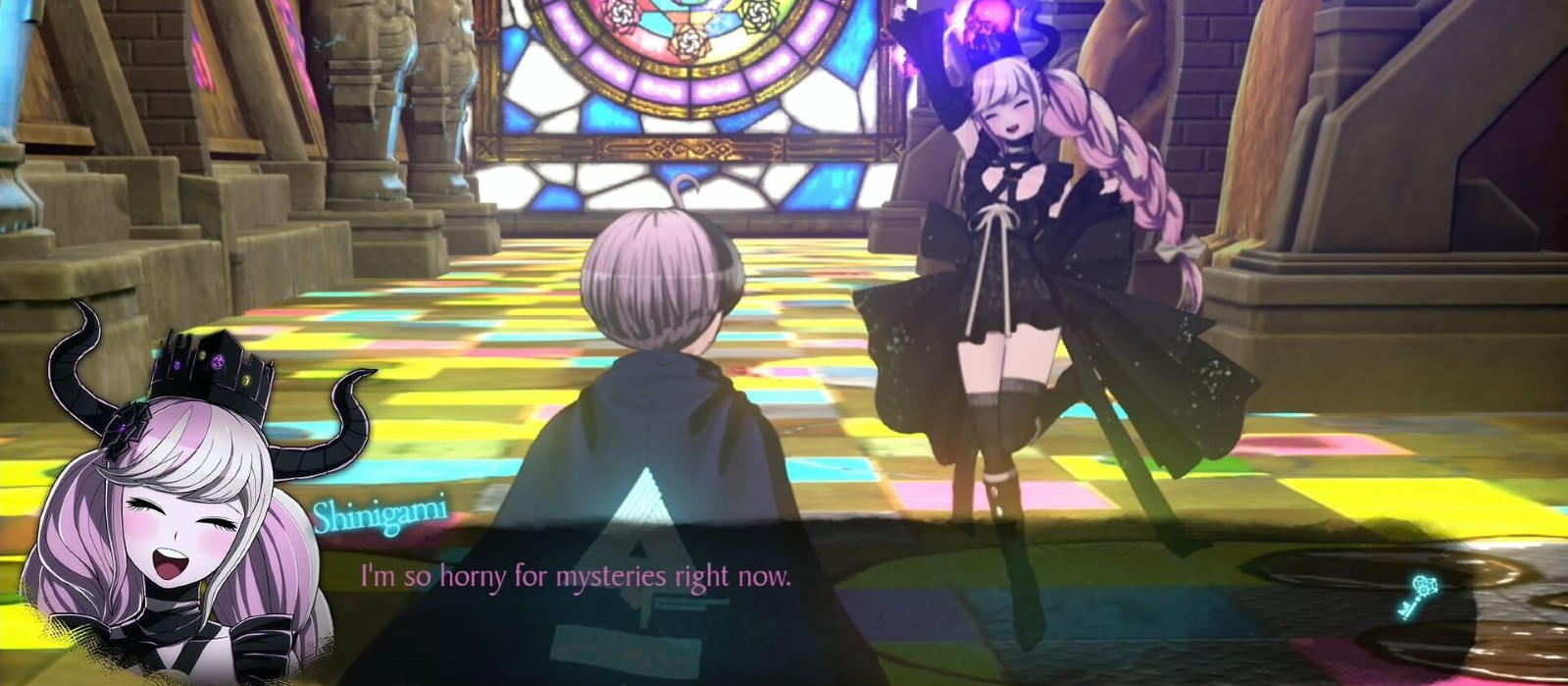 En ce qui concerne l’écriture, on sent bien que l’on se retrouve avec l’équipe derrière les Danganronpa tant l’ADN de ces deux séries est similaire. Le scénario est prenant, les rebondissements et autres retournements de situation sont nombreux et souvent difficiles à voir venir, les personnages sont hauts en couleur, les enquêtes sont soignées et le tout se montre assez mature. Tout n’est bien sûr pas parfait et la progression est moins maîtrisée que sur un Danganronpa, mais on apprécie tout de même de découvrir ce que les scénaristes ont écrit durant toute la durée de l’aventure. Toujours concernant les doléances, on regrette le fait que le fan service soit aussi présent, essentiellement à cause de Shinigami qui est hyper sexualisée et n’hésite pas à en rajouter une couche avec des blagues parfois lourdingues.