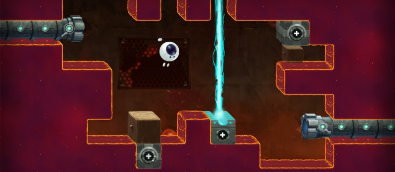 Psychobot n'a pour s'aider que deux contrôles : se déplacer librement dans les niveaux grâce au stylet du GamePad, et aspirer / envoyer des blocs en face de lui. C'est avec ce concept simplissime que le joueur doit résoudre toutes les énigmes qui lui sont proposées, ces dernières devenant rapidement ardues pour les non-initiés au genre. Le twist vient en fait du lancé de blocs, puisqu'il est impossible de les placer où bon nous semble. Le robot les lance simplement devant lui, horizontalement : l'objet ne s'arrête pas avant de rencontrer un mur et, s'il n'y a rien en dessous de lui, il va irrémédiablement tomber sur le sol. La seule solution pour freiner sa course est qu'il rencontre un autre bloc de même genre puisqu'il va s'y coller automatiquement, sans se soucier des lois de la gravité. L'essentiel des puzzles se résout de la sorte, avec également quelques interrupteurs à activer simplement en passant par dessus, ou des monstres blobs à utiliser judicieusement (par exemple, en écraser un avec un bloc rendra ce dernier collant).