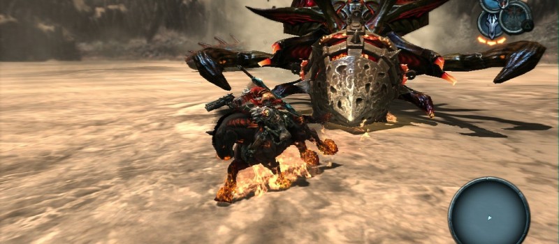 Darksiders beaucoup moins commun que ses concurrents, c'est le soin apporté au côté exploration, qui représente finalement le plus gros du jeu. Des énigmes, des mécanismes, des objets magiques à utiliser avec intelligence, des allers-retours, quelques arrachages de cheveux et une fierté immense quand on a enfin réussi à comprendre ce qu'on veut nous faire faire. Le tout est réellement pensé avec brio, et si l'on retrouve certains classiques du genre "les gros blocs à pousser" ou encore "les rayons de lumière à rediriger", même les gros blocs trouvent des utilités originales et vous devrez utiliser avec rigueur les nombreux objets qui s'accumulent dans votre inventaire pour pouvoir avancer. Le mélange des genres donne un résultat efficace qui ravira plus d'un joueur. D'accord, Guerre a un petit peu le charisme d'un Judge Dredd, le genre de mec au sourire difficile mais à la gâchette facile. Mais dans une histoire bien écrite, il faut reconnaître qu'il devient attachant. Les décors et les graphismes en général sont plutôt agréables sans être transcendants. Les boss, gigantesques et brutaux, réservent de bonnes surprises puisqu'il vous faudra, comme à la grande époque, étudier leurs mouvements et ne pas se contenter de sortir son panel de coups les plus puissants. Au final,