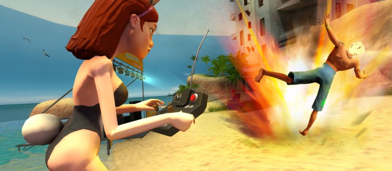 Ensuite, la jouabilité est un des gros problèmes du jeu car elle est hasardeuse et mal pensée. Une fois de plus je perçois une idée qui n’a pas su être utilisée convenablement. Le jeu vous permet d’avoir des armes d’une main et divers objets nommés des « pousse au crime » de l’autre. La plupart des armes sont des armes de corps à corps et autant la visée est désastreuse avec une arme à feu autant pour poignarder votre adversaire ça devient impossible ou il faut être chanceux ! Et c’est triste parce qu’avec de l’empathie on voit qu’il y a différents types d’armes dont certaines originales (du lance-flammes au taser en passant par le rat explosif télécommandé) et que s’étriper entre potes sur un plateau de cinéma avec le réalisateur qui nous hurle au mégaphone de faire couler le sang avant la fin de la scène est une bonne idée mais sur le papier seulement car dans les faits c’est ingérable…