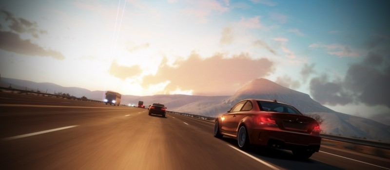 Forza Horizon impressionne le plus. Jamais un monde ouvert n'aura été aussi finement modélisé. Certains paysages sont à se taper le cul par-terre. La vue qu'on a du haut du Red Rock Canyon est tout simplement fabuleuse. Et le Tree Tunnel à quelque-chose de féérique. Mais ce n'est pas tout. Le cycle jour/nuit dont se pare le titre a un rendu bluffant. Et on peut en dire autant du reste des effets de lumière. Les feux d'artifices tirés depuis le festival Horizon se voient à des kilomètres. Et le pire, c'est que le jeu reste parfaitement fluide du début à la fin de la partie. Tout ça pour dire qu'il est particulièrement difficile de prendre le jeu en défaut à ce niveau. Ce serait comme jouer à Où est Charlie ? alors que ce bâtard serait invisible. Et c'est d'ailleurs là que résident les défauts du soft. En effet, la nature bac-à-sable du titre donne envie d'aller explorer un peu l'environnement, de faire un peu de hors-piste. Ce qu'il autorise trop rarement. Si bien qu'on se heurtera quelques (rares) fois à un mur invisible. L'autre défaut qu'on peut lui trouver, visuellement parlant, c'est que, mis à part le hub central du jeu, l'environnement manque un peu de vie. On a la circulation, des avions qui passent de temps en temps. Mais les villes restent désespérément vides. Il y a en effet un manque cruel de piétons dans les rues, de golfeurs sur le green, de paysans dans les champs. Si cela peut se comprendre dans les phases de course, on aurait aimé en voir pendant les différentes virées que le jeu nous donne l'occasion de faire. Mais, encore une fois, on est là dans du détail. Et cela n'éclipse en rien la beauté époustouflante du titre de