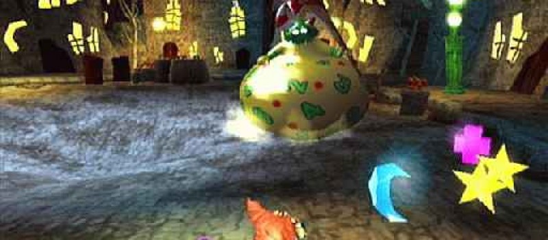 Revenons au thème principal du jeu, le temps ! Mais, pour pouvoir contrôler le temps, il va falloir faire des cristaux combos. Hein, quoi ? C’est quoi cristaux combos ? Ah ah… En fait, lorsque vous aurez accumulé 3 ou 4 cristaux de même couleur, vous aurez gagné le combo temps correspondant aux cristaux. Par exemple, il y a 3 monstres (bon, ils sont petits, mais ils appellent ça des monstres) qui se présentent à vous. Une pause ou un ralenti, et vous voilà tranquille pour les tuer. Mais il n’y a pas que ces combos temps, il y a aussi le retour en arrière rapide, assez pratique su un pont s’effondre, ou encore l’avance rapide, ou vous deviendrez presque invincible, et pour finir l’enregistrement, lorsque vous devrez utiliser votre double pour franchir un cap du niveau, ou pour faire une diversion. A noter que le retour en arrière rapide est utilisé à chaque fois que vous vous ferez toucher par un ennemi, et contrairement au proverbe, Blinx n’a pas 9 vies.