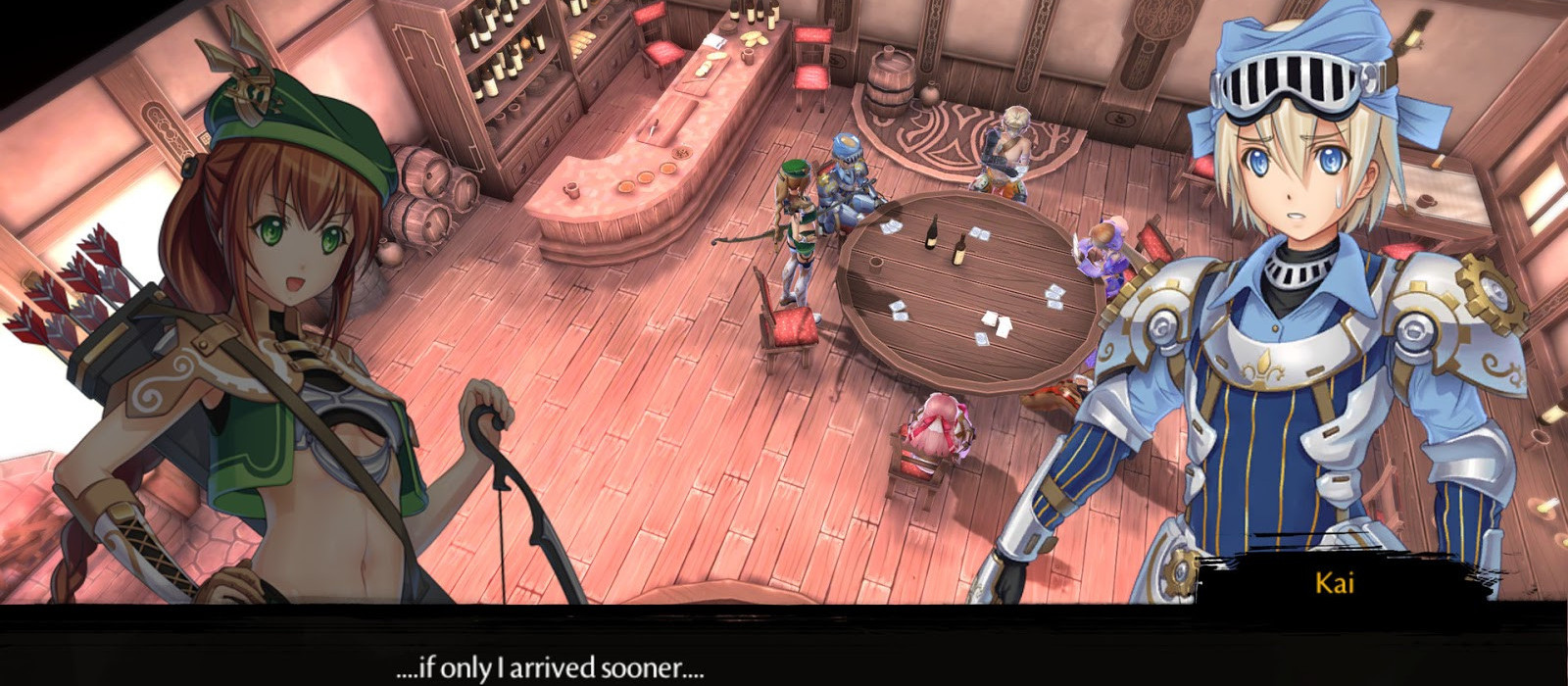 Pour leur bébé, les développeurs de Tears of Avia ont voulu peaufiner leur histoire et leur background, et ça se sent. Le monde dans lequel on atterrit est travaillé, même si l'on se retrouve là encore sur du grand classique pour le genre : un monde en guerre, des artefacts légendaires à récupérer, un grand méchant vraiment méchant, et ainsi de suite. Ce monde dispose aussi de sa propre religion, avec différents dieux qui accordent leur bénédiction via des offrandes que l'on fait et qui viennent offrir des bonus durant les combats. Les personnages principaux sont également plutôt attachants avec leur petit côté groupe d'amis partant à l'aventure et l'histoire est plutôt plaisante à suivre, d'autant plus qu'elle est rehaussée par de nombreuses touches d'humour... Mais c'est hélas tout. Car, finalement, le joueur n'a vraiment l'occasion de découvrir tout ce que ce monde a à lui offrir : les villes sont grandes mais vides, très peu de PNJ sont disponibles et l'on rejoint les combats en utilisant des portails. Il n'y a donc pas d'exploration.